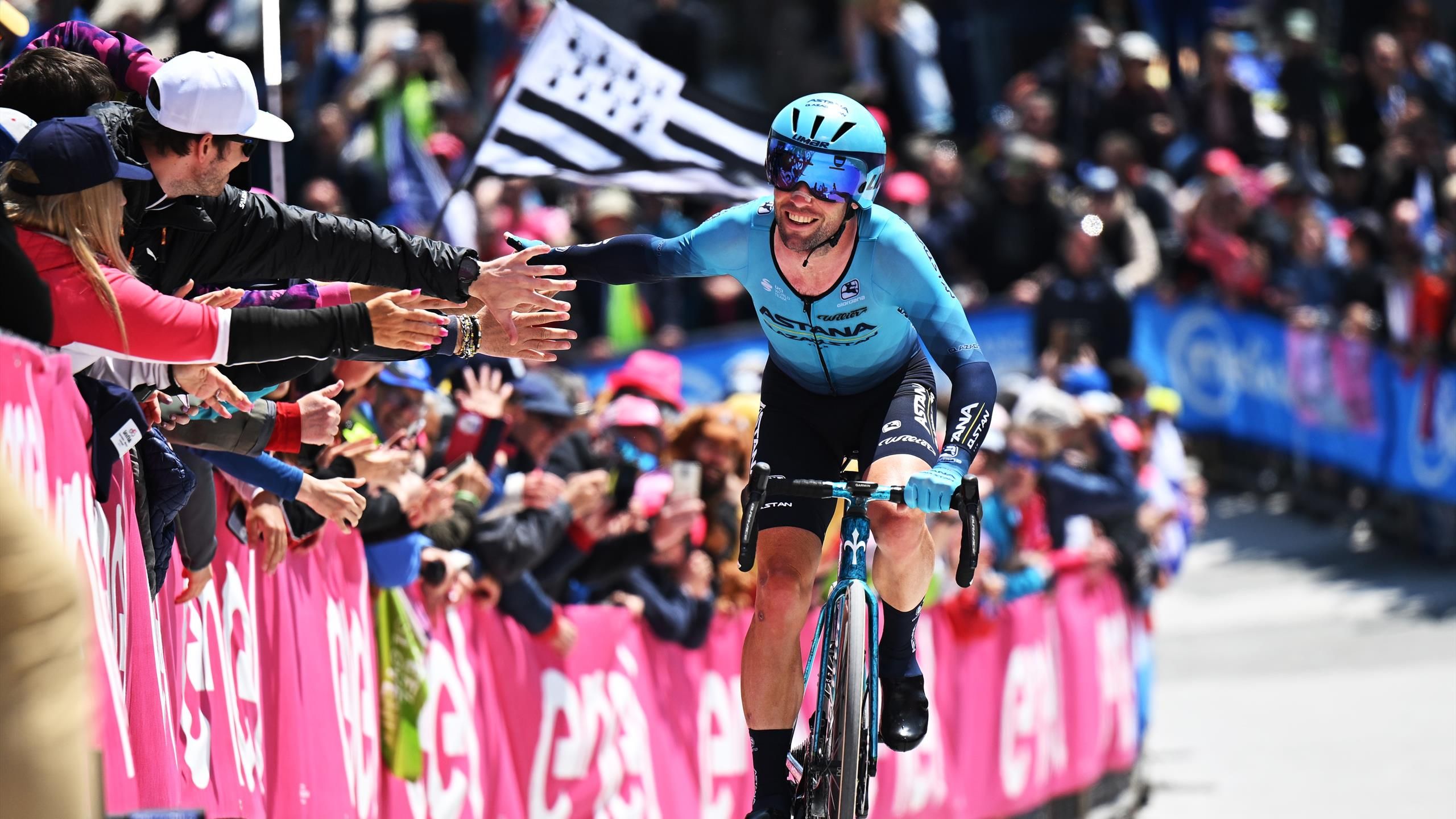 1) Mark Cavendish (DED/KIN) greets the Giro fans for the last time. Definitely an occasion for a last old-style Cav mass sprint stage win tomorrow.